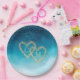 Assiettes En Carton Aquarelle Bleu Océan Vagues Avec Mariage Monogramm