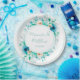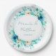 Assiettes En Carton Aquarelle bleu turquoise Floral Mariage géométriqu