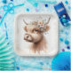 Assiettes En Carton Aquarelle Boho Highland Vache avec fleurs nuptiale