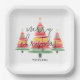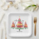 Assiettes En Carton Aquarelle Carré Arbres de Noël
