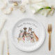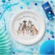 Mignonne et élégante Chien Happy Birthday Paper Plate. Chiens portant des casquettes de fête et des cravates d'arc, et ils sont prêts à Pawty!