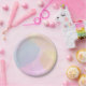 Plaques en papier couleur arc-en-ciel : Rendez votre fête encore plus colorée avec ces assiettes colorées. Design simple mais beau avec des aquarelles colorées. Vous pouvez modifier le texte du modèle de conception.