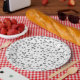 un mignon motif moderne et répétitif de taches d'aquarelle qui ressemblent à une fourrure dalmate ! De superbes taches noires et des éclaboussures rendent cette assiette amusante et moderne. Idéal pour les parties de pompiers. taches noires et blanches.
