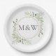 Assiettes En Carton Aquarelle de verdure Feuillage Monogramme Initiale