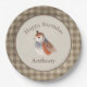 Joli oiseau brun entouré d'une plaque d'anniversaire patinée brune personnalisée. Si mignon pour l’anniversaire du jeune enfant.