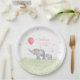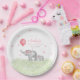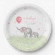 Assiettes En Carton Aquarelle Eléphants & Coeur rose Bébé Douche fille