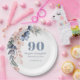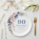 Assiettes En Carton Aquarelle florale Dusty bleu rose 90e anniversaire