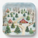 Assiettes En Carton Aquarelle Hiver Paysage rustique avec Fir Trees