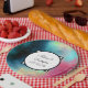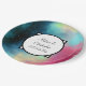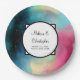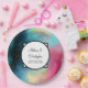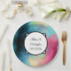 Plaques en papier personnalisées événement mariage avec un design abstrait cool et élégant. Les aquarelles se mélangent pour créer l'illusion d'une image spatiale. Vert avec des tourbillons de violet, jaune et rouge clair se mélangent avec un peu de points et d'étoiles blancs. Une élégante création artistique.