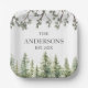 Assiettes En Carton Aquarelle Monogramme Pins rustiques et branches