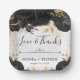 Assiettes En Carton Aquarelle noir et or Fleurs Mariage