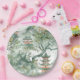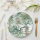Cette assiette en papier est composée d'une pagode de style asiatique traditionnelle, rendue dans de délicats traits d'aquarelle, au milieu d'un paysage verdoyant. Le design s'inspire de l'élégance architecturale que l'on retrouve au Japon, en Chine, en Corée et au Vietnam, et qui rend la sérénité de la nature mêlée au patrimoine culturel. Le mélange harmonieux de teintes verdoyantes et de détails complexes évoque un sentiment de tranquillité et d'intemporalité, ce qui en fait une pièce polyvalente pour diverses applications artistiques.