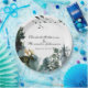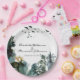 Cette élégante plaque d'inspiration nature présente une scène forestière du Pacifique Nord-Ouest dans un style aquarelle. L'image montre des oiseaux volant dans la partie supérieure, au-dessus de deux noms d'échantillons et de la date du mariage. La partie inférieure est composée d'une forêt de pins et d'orignaux de style aquarelle.