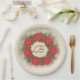 Commencez les vacances d'hiver en stockant les produits de première nécessité, qu'il s'agisse d'un grand dîner en famille, d'une fête de Noël d'entreprise, et/ou tout simplement d'être prêt quand les amis et voisins s'arrêtent pour vous souhaiter de bonnes nouvelles. Ces plaques de papier brillantes et lourdes ont un champ de texte à personnaliser avec votre monogramme centré dans une couronne d'aquarelle numérique originale avec des "fleurs" de Poinsettia rouges, des feuilles verts chauds et des aiguilles de pin. "Bonnes Fêtes !" vagues au-dessus de tout.