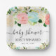 Assiettes En Carton Aquarelle rose et Baby shower de fleurs de menthe