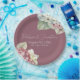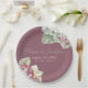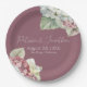 Ces romantiques assiettes à fleurs mariage sont ornées d'hydrangées rose et blanche aquarelle sur un arrière - plan roux poussiéreux. Un délicat bouquet de fleurs d'hydrangée est représenté sur le dessus, et un autre au fond. Un exemple de nom de couple est imprimé au centre dans une police de script élégante, suivi d'une date et d'un emplacement mariages.