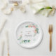 Assiettes En Carton Aquarelle rose Fleurs blanches Mariage cadre vert