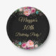 Assiettes En Carton Aquarelle rose or Floral Noir fête d'anniversaire