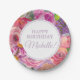 Assiettes En Carton Aquarelle rose violet Fleurs sauvages Joyeux anniv