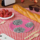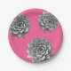 Assiettes En Carton Aquarelle Succulente Gris sur rose chaud