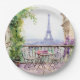 Aquarelle Eifel Tower Paris Café Français Paper Party Plates dispose d'un coin salon de café français aquarelle avec Paris et la tour Eifel en arrière - plan. Créé par Evco Studio www.zazzle.com/store/evcostudio