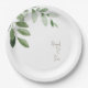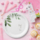 Assiettes En Carton Aquarelle verte Mariage blanc personnalisé