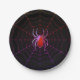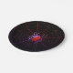 Un arrière - plan noir est le décor d'une toile d'araignée colorée couleur néon, agrémentée au centre d'une araignée métallique colorée. Dans les couleurs du rose chaud, du violet, du rouge et une touche de jaune.