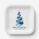 Assiettes En Carton Arbre de Noël bleu Aquarelle