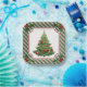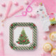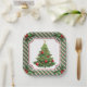 Une belle plaque en papier de Noël ornée d'un sapin de Noël coloré avec une bordure en plastique de Noël et des accents saints.