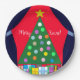Assiettes En Carton Arbre de Noël vert avec Draps Bleus :