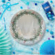 Des arbres de Noël ornés de neige blanche et d'une couronne rouge et verte festive.