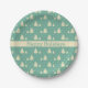 Assiettes En Carton Arbres d'hiver rétro sur Turquoise avec bande de t