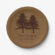 Arbres sur plaque de papier mariage bois brun avec deux conifères sur le grain de bois et texte en marron. Ce design mariage moderne et élégant est un modèle entièrement personnalisable et fait partie d'un ensemble mariage parfait pour un mariage boisé rustique, douche nuptiale, réception, fiançailles ou fête d'anniversaire. Notez qu'il n'y a pas de bois réel juste une image IMPRIMÉE.
