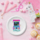 Assiettes En Carton Arcade Jeu Rétro Anniversaire fête bleu rose