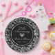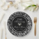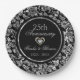 Assiettes En Carton Argent métallique et Damas noir 25e anniversaire
