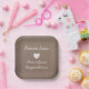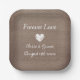Arrière - plan de burlap rustique mariage campagnard partie Plaques papier. Design vintage avec symbole cardiaque patiné. Le design est parfait pour les clients de votre mariage rustique et chic. Personnalisez avec le nom de mariée et de mariée dans la typographie de script élégante. Options de forme carré ou ronde.