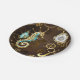 arrière - plan en bois Brown avec mer, crête mécanique, volant antique, ancre dorée et divers engrenages en or et laiton. Style Steampunk.