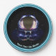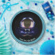 Image fractale bleue et violette ressemblant au casque et aux épaules d'un astronaute sur un arrière - plan étoilé. Ajoutez votre propre texte.