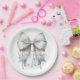 Tendre et élégante assiette en papier avec le titre " Elle attache le nœud " pour votre thème de Shower de Mariée avec un nœud or et blanc. Produits assortis disponibles dans ma boutique.