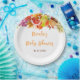 This beautiful and elegant plate features watercolor pomegranate, apples, grapes, mushrooms and foliage. The text combines handwritten script and serif fonts for a stylish and modern look. This is perfect for a rustic autumn fall baby shower.