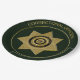 Avocat correctionnel Badge-Green et Gold-PAPER PLATES-L'insigne est créé en argent ou en or et noir avec une petite touche de bleu. Une étoile d'argent/or à sept (7) points forme l'insigne. Le texte qui courbe le haut du badge dit : MINISTÈRE DES CORRECTIONS. Texte en bas : AGENT CORRECTIONNEL. Ces mots s'assoient sur une solide bague noire. Plus d'argent/or décorent l'insigne partout. Un emblème d'aigle aux étoiles d'argent ou d'or se trouve au centre. Le texte plus petit au centre se lit comme suit : Sceau de l'État. Le badge n'est pas spécifique à l'état. Sous le badge se trouve un centre bleu solide. Une jante extérieure verte avec du texte argent/or courbant autour du sommet qui dit : AGENT CORRECTIONNEL. L'insigne de l'agent de correction n° 39 ; est disponible en argent ou en or avec un arrière - plan bleu ou noir ou vert. La coordination des cadeaux Zazzle et des fournitures de fête est disponible. Choisissez n'importe quelle taille de plaques de papier Zazzle.