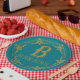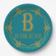 Le cadre rond de style vintage élégant d'or avec le texte B est pour Bunco. L'amusement et le plat de fête de Bunco est parfait pour votre prochaine partie de Bunco. La couleur d'arrière - plan peut être changée pour adapter votre propre palette de couleurs.