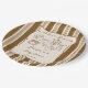 Baby is brewing retro stripes coffee baby shower personalized printed paper plates, vintage retro brown stripes hand drawn coffee baby shower monogrammed paper plates, hand writing baby shower printed paper plates, a baby is brewing baby shower personalized table decor