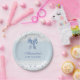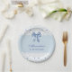 Célébrez votre baby shower avec une élégance intemporelle grâce à cette assiette en papier Baby Shower au ruban de satin bleu. Parfaite pour un baby shower vintage en dentelle, une fête inspirée de Bridgerton ou un thème bleu poussiéreux sophistiqué, ces assiettes ajoutent du charme et de la sophistication à n'importe quel événement. Sur un fond bleu poussiéreux doux, chaque assiette présente une délicate bordure en dentelle blanche, un nœud en ruban de satin bleu gracieusement noué et des perles bleues subtiles, évoquant le style régence classique et la romance vintage. Idéales pour un baby shower pour fille, un déjeuner ou un pique-nique, ces assiettes élégantes s'accordent parfaitement avec les nœuds, les rubans de satin, les perles et la décoration en dentelle pour créer une atmos