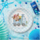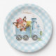 Assiettes En Carton Baby shower bleu Fox and Train En vichy