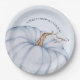 Un grand citrouille bleu met en évidence ces assiettes en baby shower de garçon mignonnes avec les mots "Un petit citrouille est en route" arquées autour du sommet. (Disponible aussi en rose et menthe.) CORRESPONDRE des articles dans notre magasin.