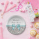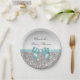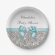 Assiettes En Carton Baby shower Classé Faux Turquoise Bow Silver Sequi