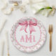 Cette conception de plaque présente un arrière - plan rose très chic à motif en treillis rose avec un arc rose coordonné. Vous pouvez personnaliser avec vos initiales monographiques.