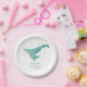 Plate de baby shower à thème nautique mignonne illustrant l'illustration d'une baleine et d'une baleine maman. Parfait pour le baby shower d'un garçon.
