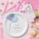 Plaques de papier baby shower bleu simple et moderne avec un design minimaliste de trois ballons bleus avec un peu de motif point. Idéal pour les fêtes baby showers. Illustré et dessiné par Patricia Alvarez.